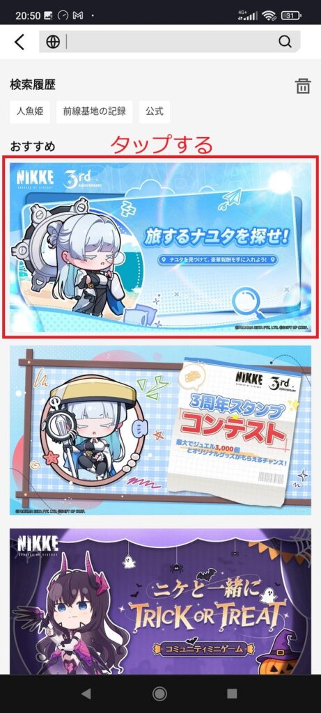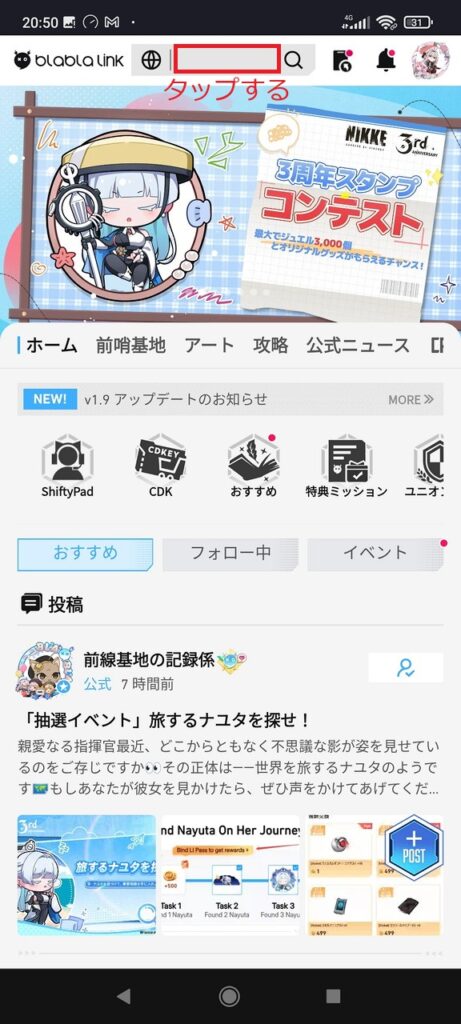 「深海の人魚姫を目覚めさせて」イベントが見つからない場合、BlablaLinkトップの検索窓をタップしてみましょう。