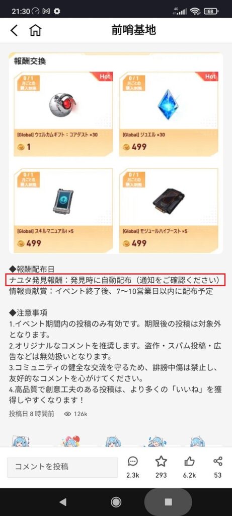 他にもBlablalinkのスレッドを探すと、「抽選でジュエルが当たる」イベントや、「先着でAmazonギフトポイントがもらえる」キャンペーンがあったりします。本ページでは解説しません。