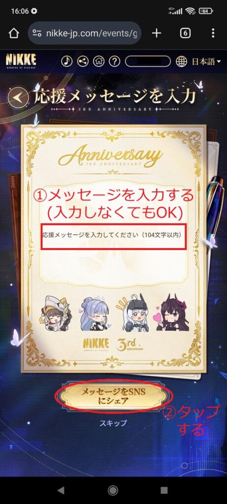 - お祝いコメントを投稿して限定コメントフレームを貰おう