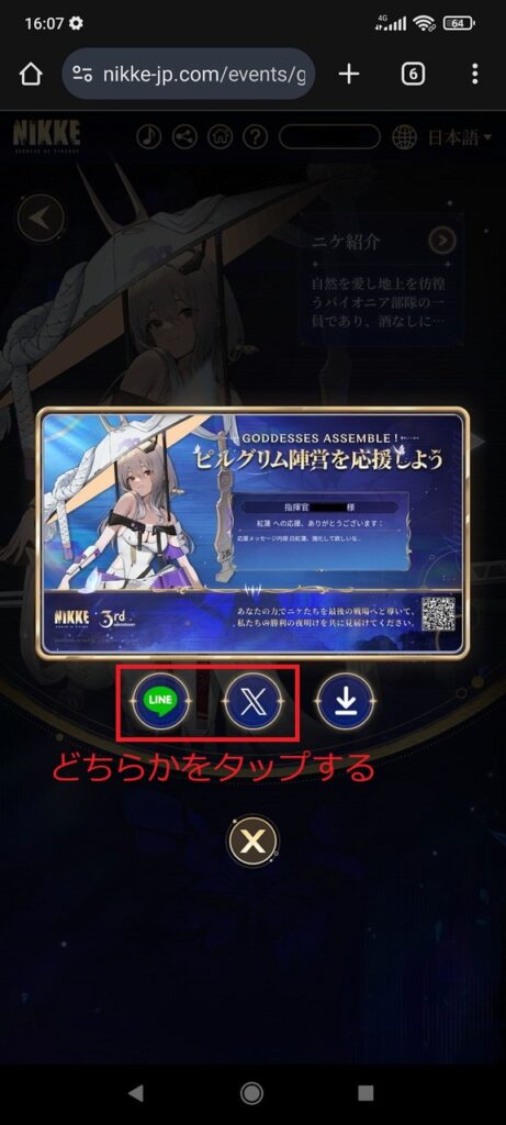 Androidスマホでは勝利の女神NIKKEからBlablaLinkを開くと、ショートカットがうまく作れませんでした。ブラウザからショートカットを作成する方法をオススメします。