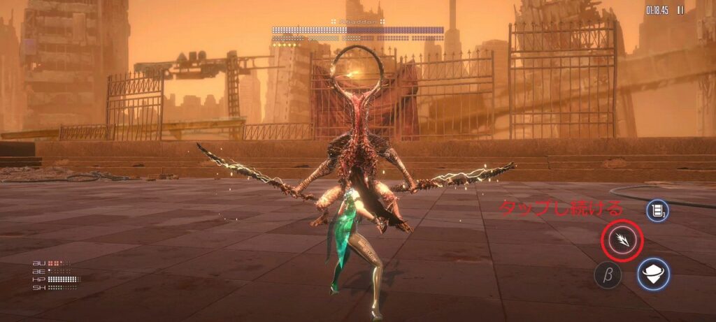 画面をタップすると、イヴが攻撃を行います。連続でタップすることで連続攻撃(コンボ)ができます。