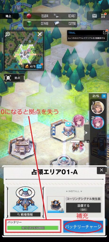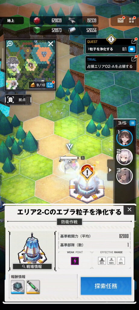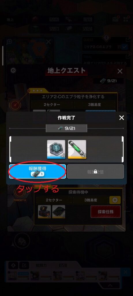ただし、セクター04の敵はより強くなっているので、エブラ粒子の浄化が5段階になるまではダメージも大きくなり気味です。上に書いた「占領地04-B」を占領するまでは、セクター03の「占領地03-C」に戻って回復しましょう。