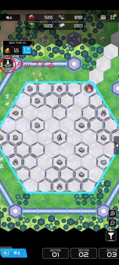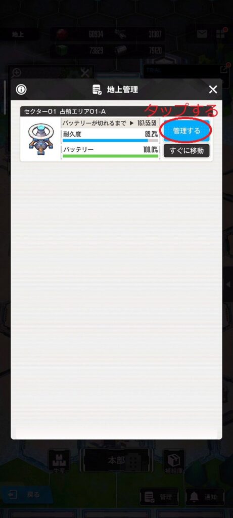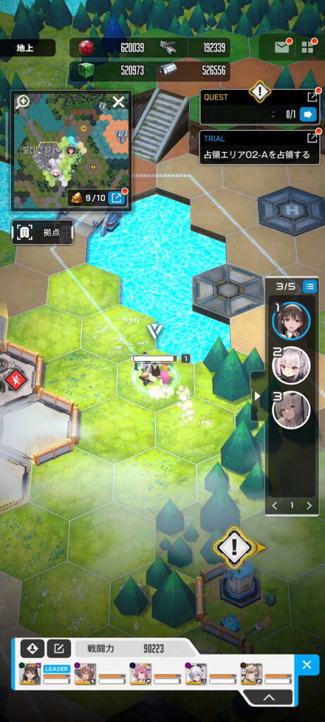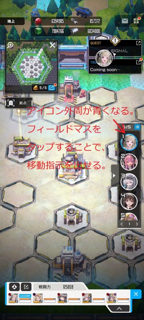 アイコン外周が青になり、選択状態になります。この状態でフィールドマスをタップすると、部隊を移動させることができます。今見ている地域に移動させることができて便利です。