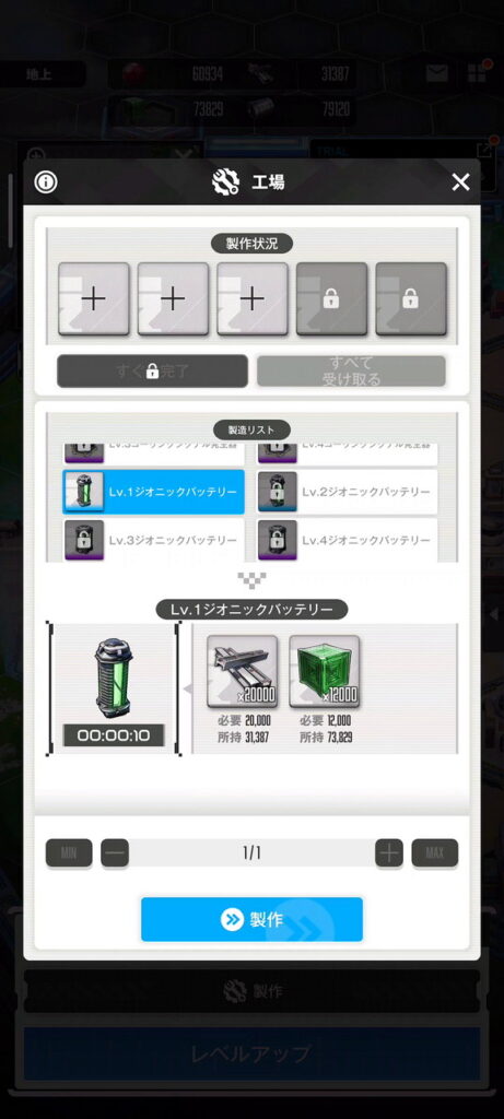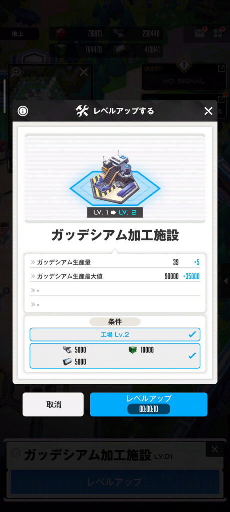 - ガッデシアム加工施設をLv.3⇒Lv.4に