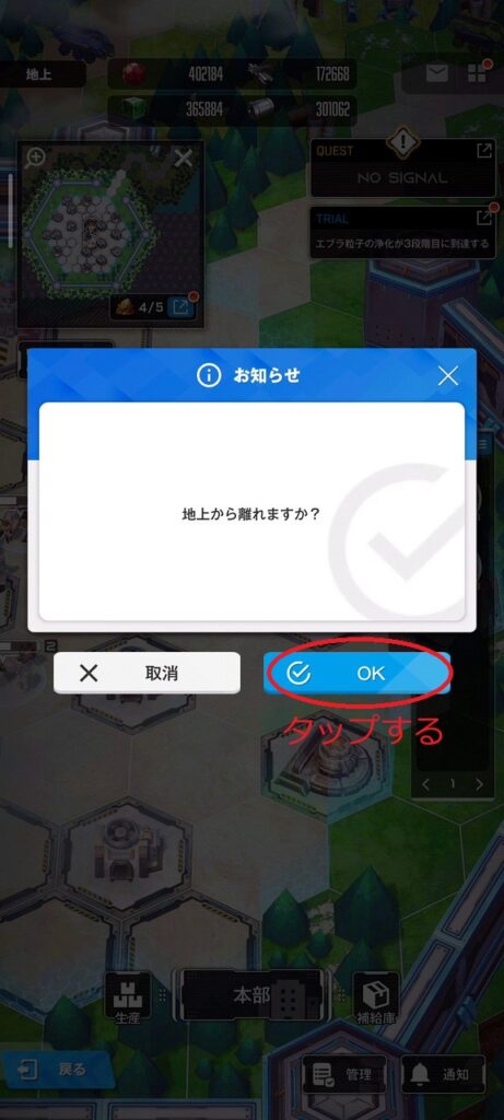 「OK」をタップします。勝利の女神NIKKEロビーに戻ります。