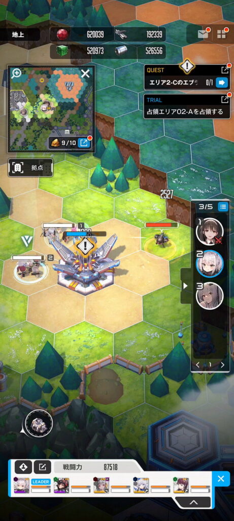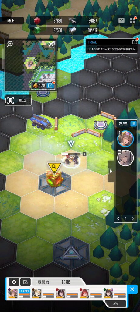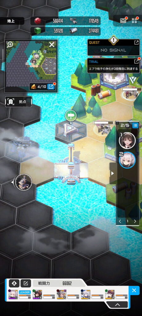 ボードゲームのような六角形のタイルで構成された地上ステージを探索します。リアルタイムシミュレーションゲームです。