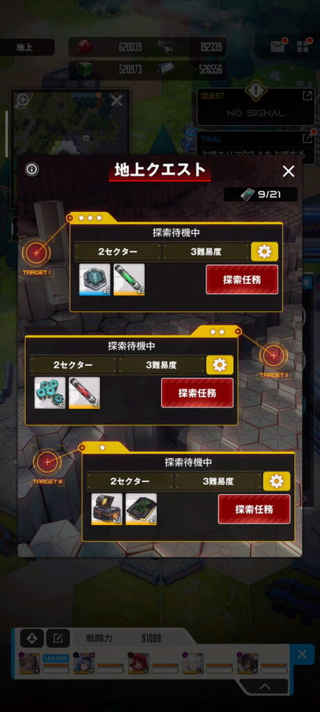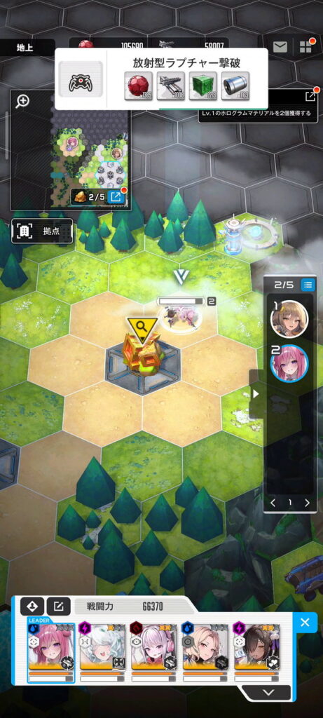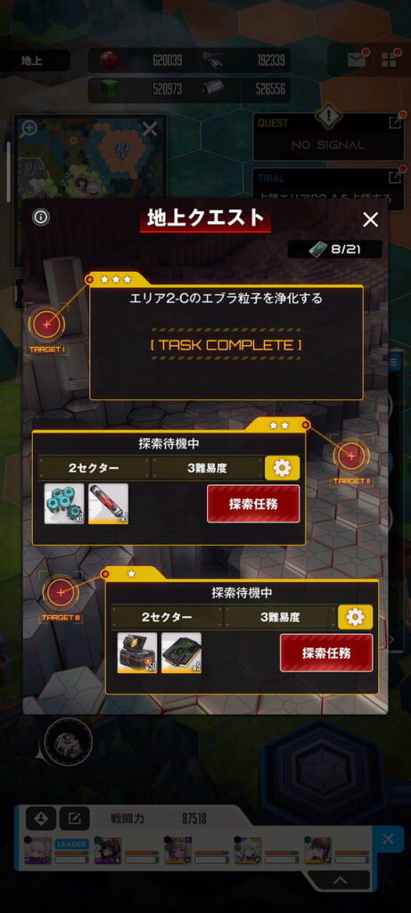 ダメージを受けたニケを部隊から外して、新しいニケを編成しなおせば、ずっと探索できそうな気もしますが…。現実には回復速度が追い付かなくなると思います。
