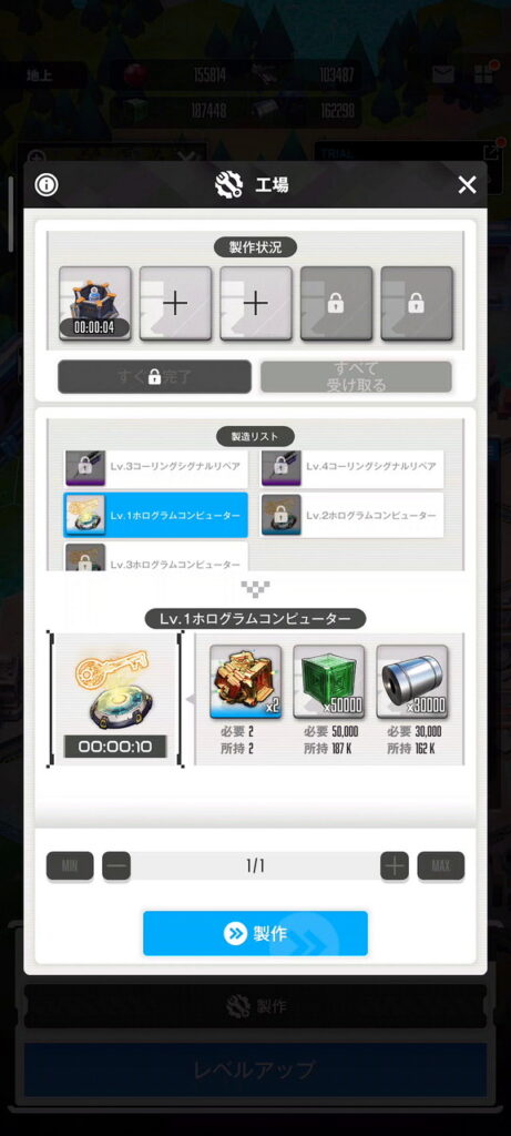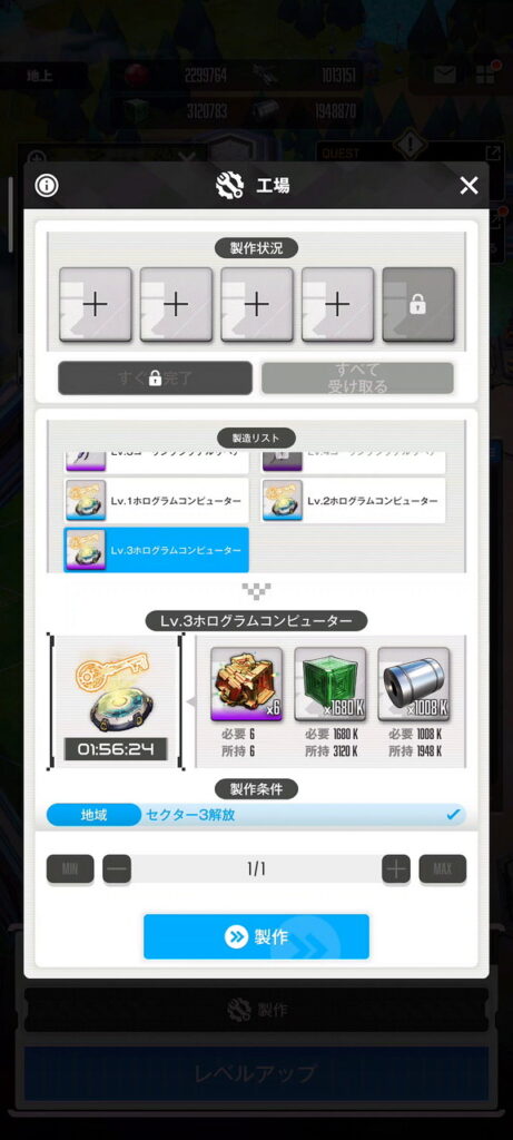 | 3 | 10 | Lv.3ホログラムコンピューターを1個製作する |