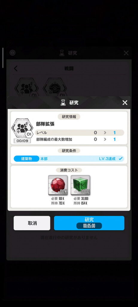 | 2 | 5 | 部隊拡張をLv.1にする |