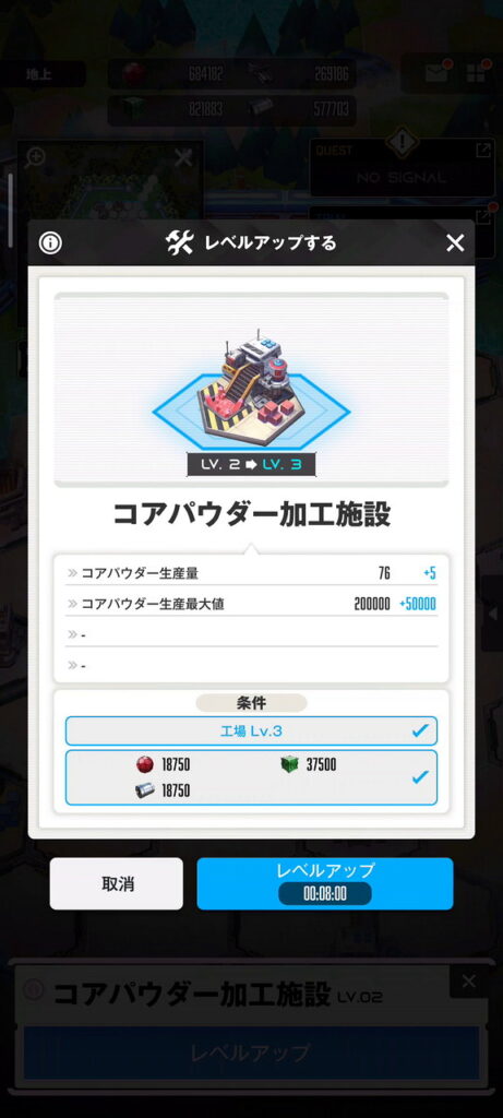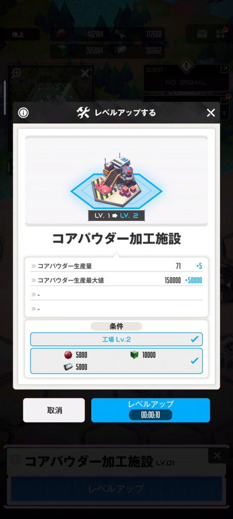 - コアパウダー加工施設をLv.3⇒Lv.4に