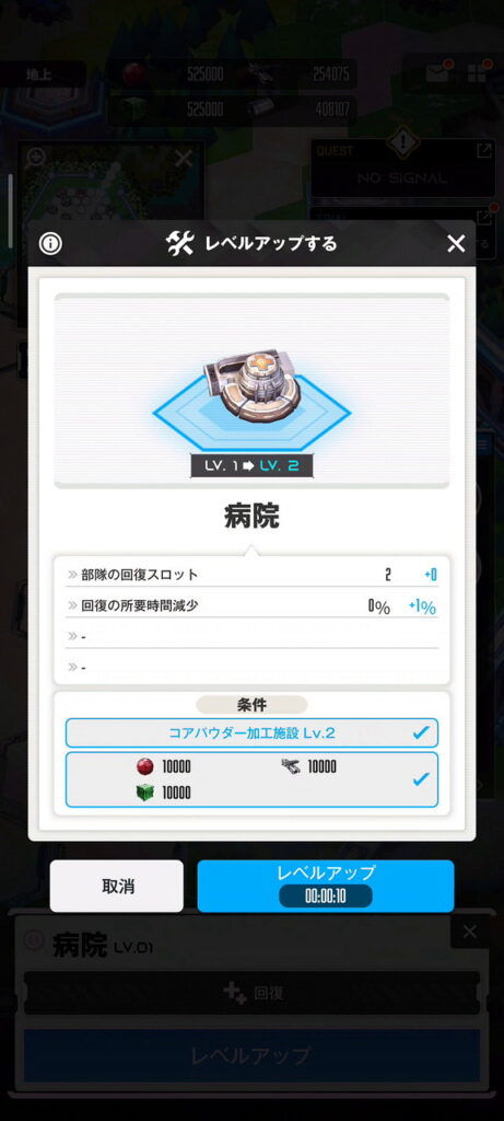 病院を利用するには、拠点または占領地にある病院をタップします。