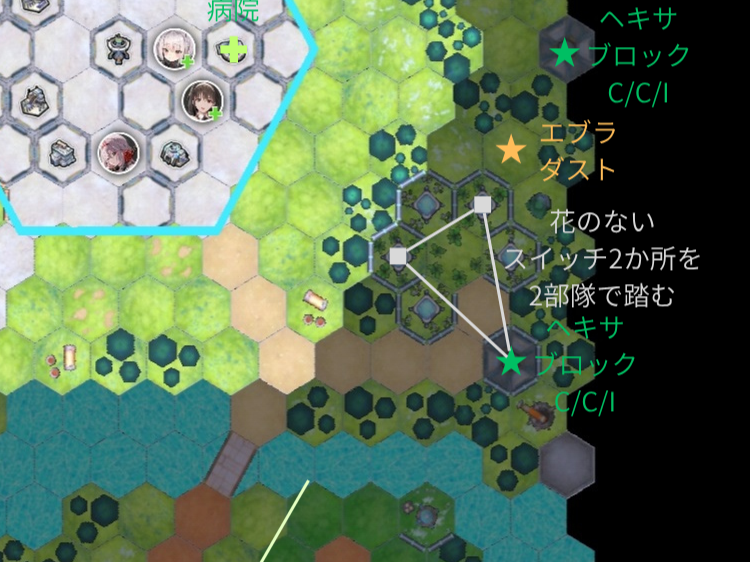 序盤だと、病院は拠点にしかありません。わざわざ拠点まで部隊を戻す必要があります。面倒…。