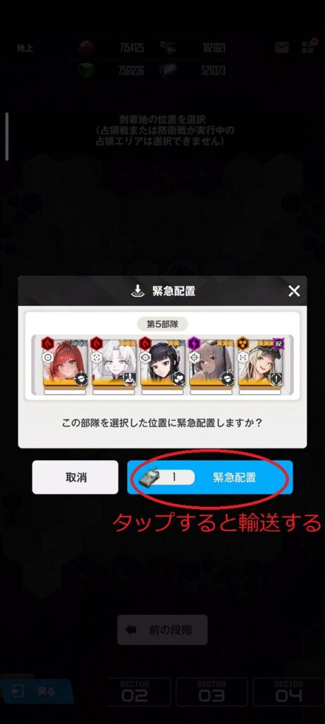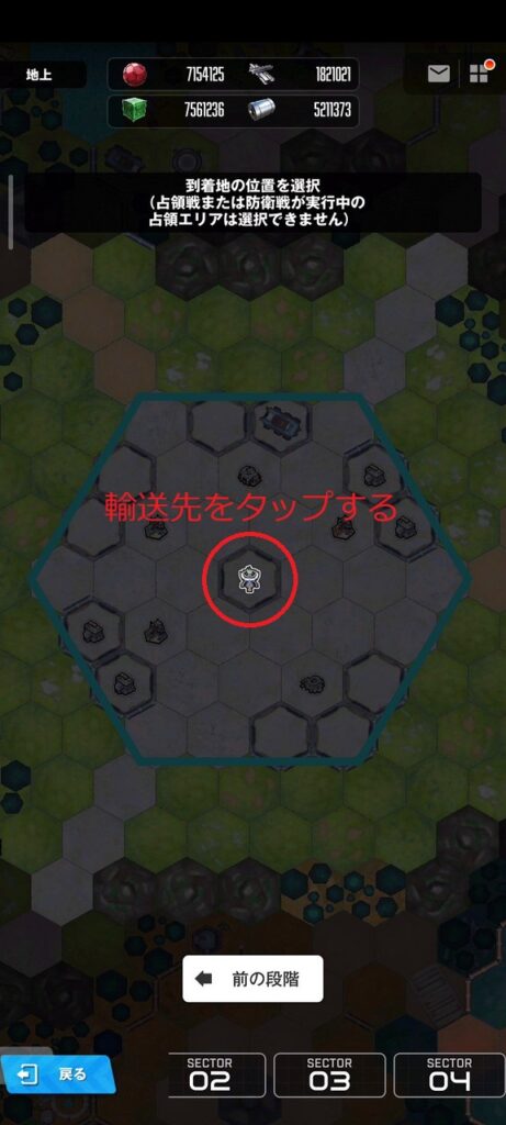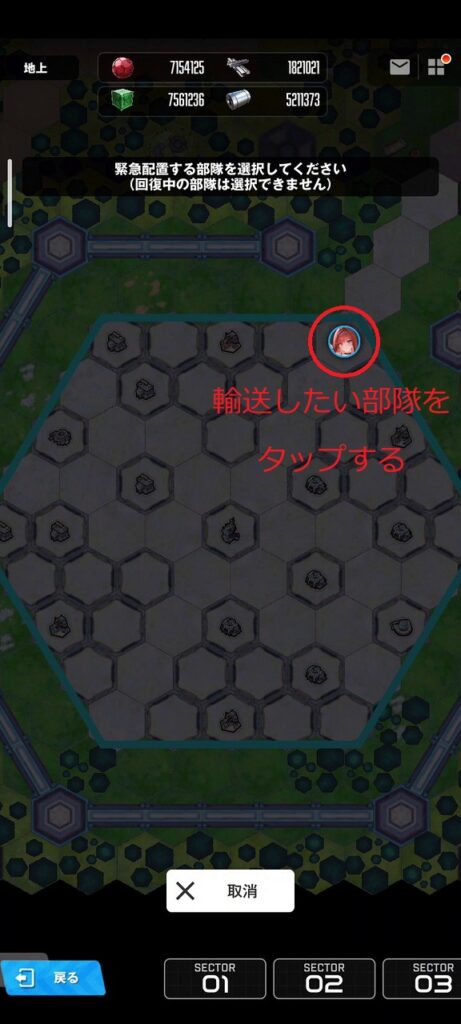 部隊を選択している状態で、同じ部隊アイコンをもう一度タップします。
