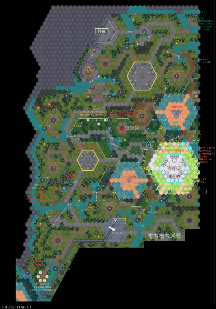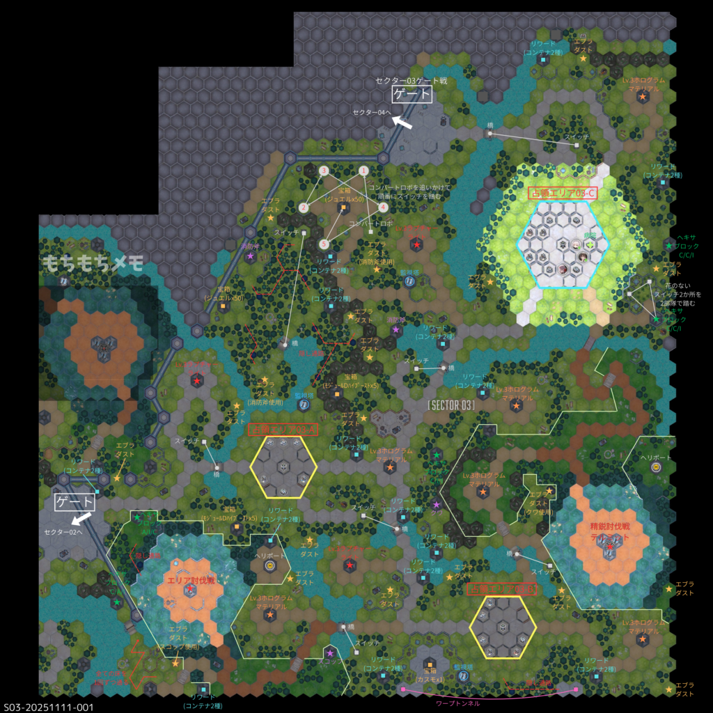 セクター04まで探索完了しました。随時、詳細を追記しています。各マップは完成しています。